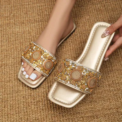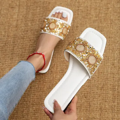 BOHEMIAN STYLE, RHINESTONE FLAT SLIPPERS
