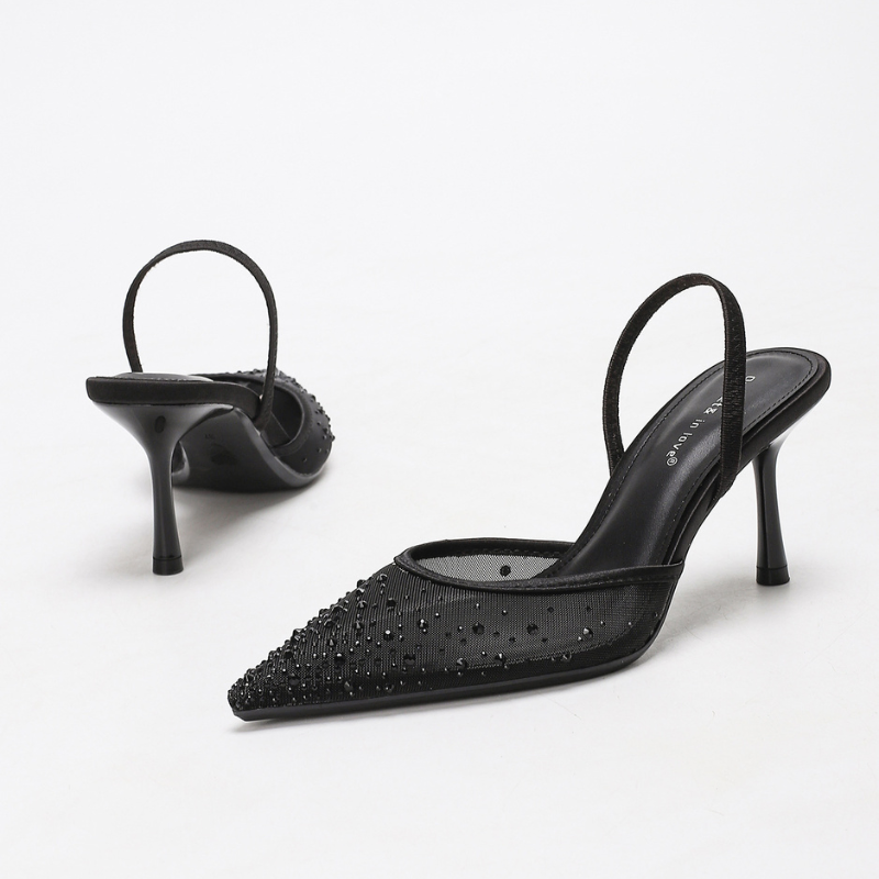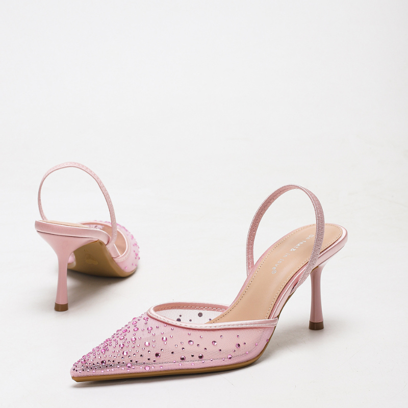 BREATHABLE MESH RHINESTONE POINTED MULES