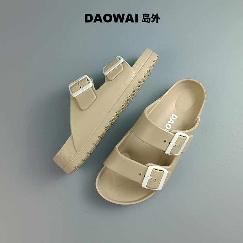 BEACHY DOUBLE BUCKLE RHINESTONE UPPER SLIPPERS
