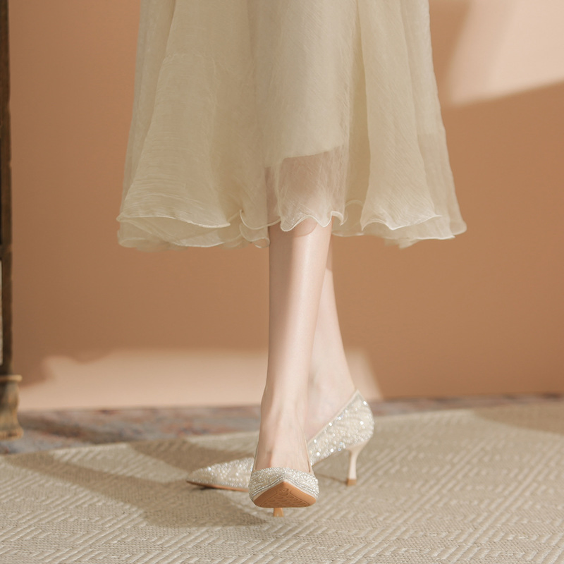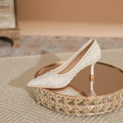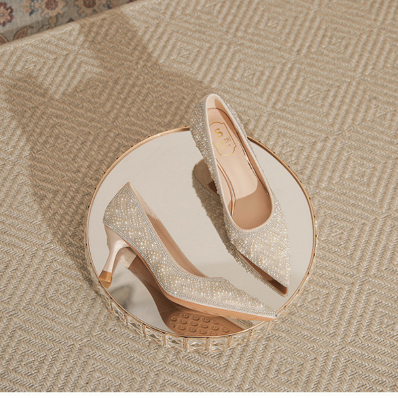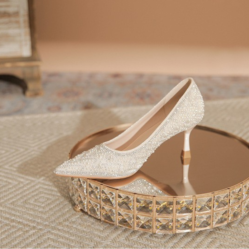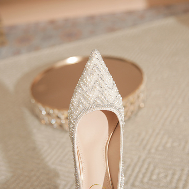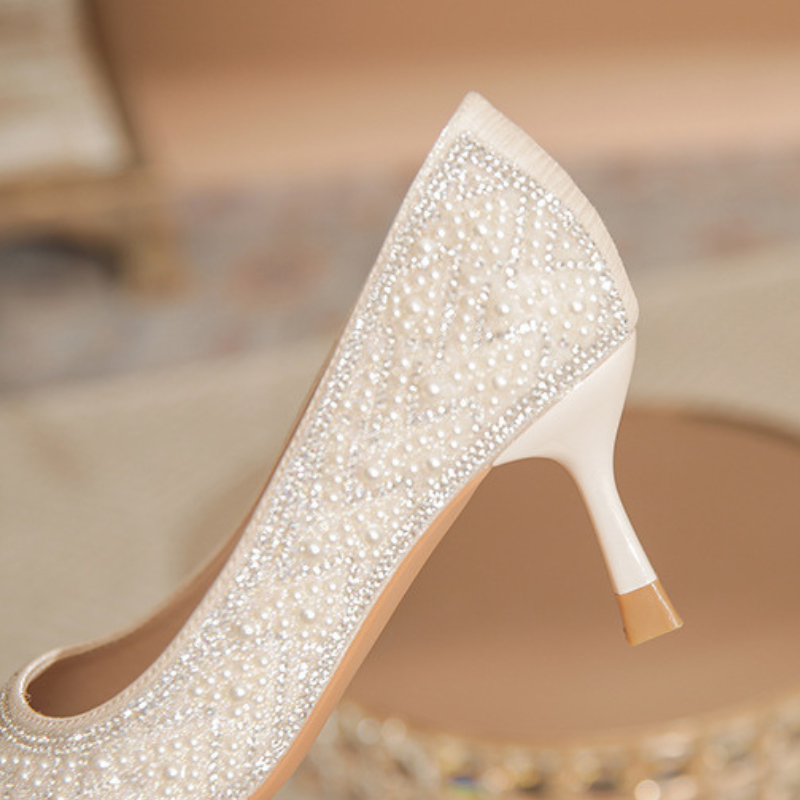 FRENCH-STYLE PEARL AND RHINESTONE HIGH HEELS