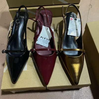 PATENT LEATHER STILETTOS CLOSED-TOE LOW HEEL