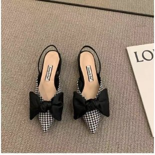 POINTED-TOE HOUNDSTOOTH BLACK HIGH HEELS