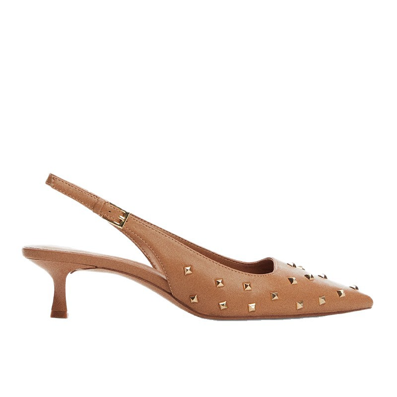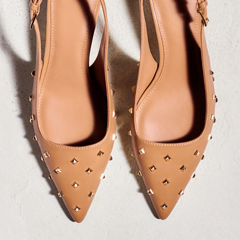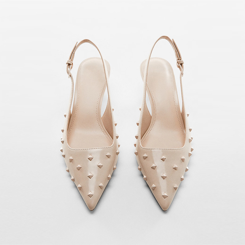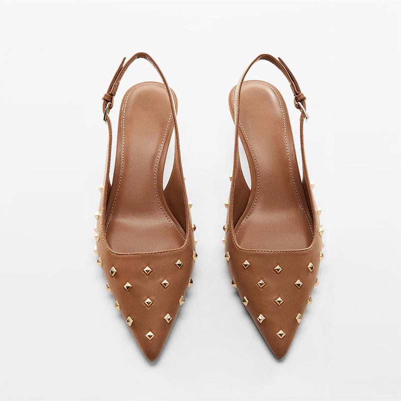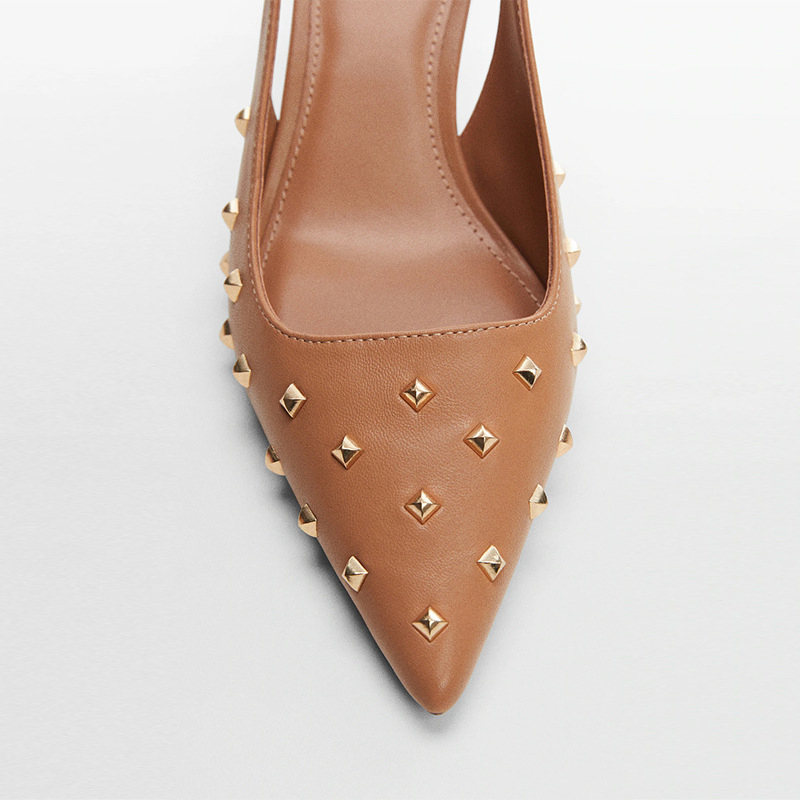 STUDDED POINTED TOE HIGH HEEL MULES