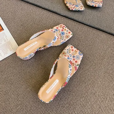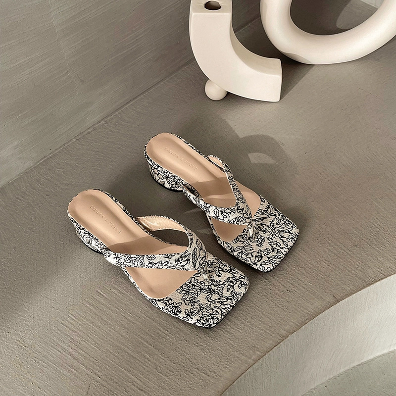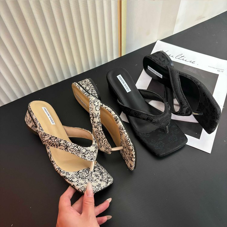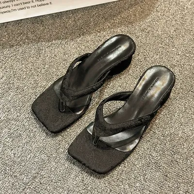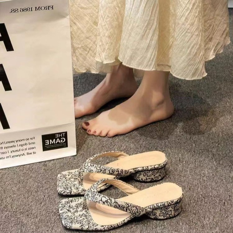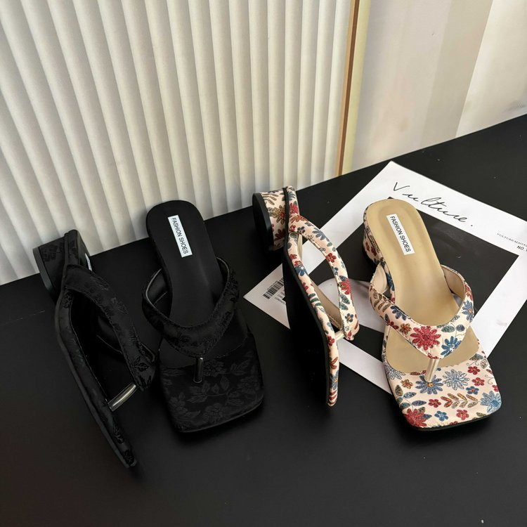 VACATION STYLE CHUNKY HEELED FLIP-FLOPS